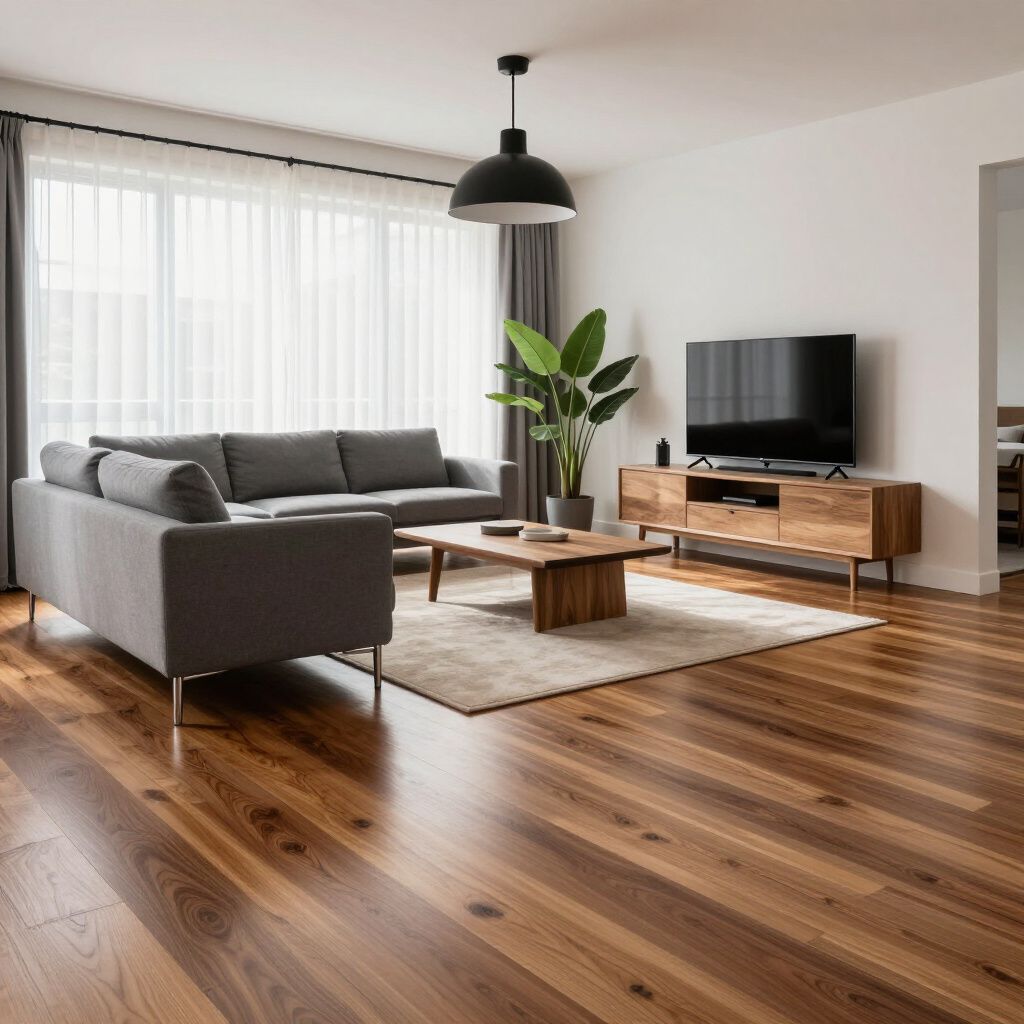 Salon rénové avec parquet authentique